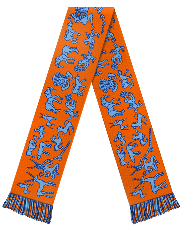 Gundestrup Cauldron Scarf - Orange and Blue