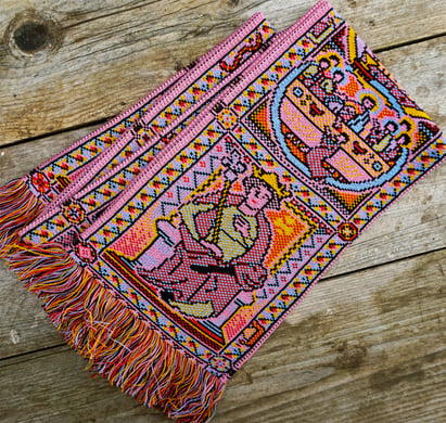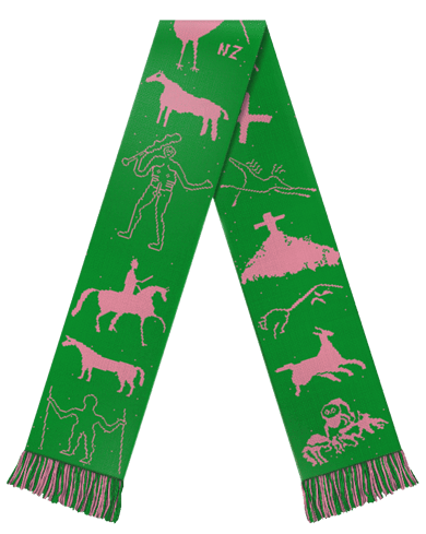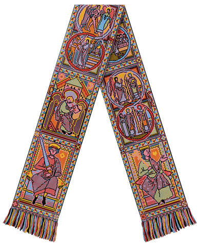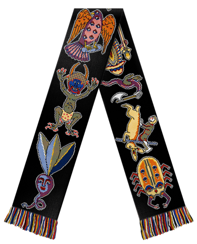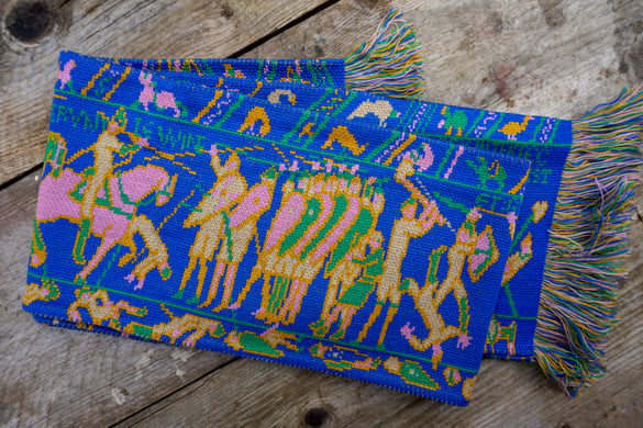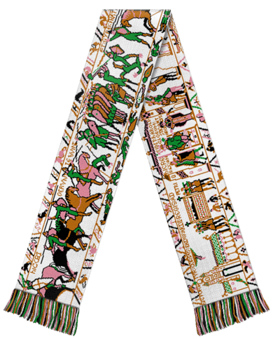 Bayeux Tapestry Scarf - White, Green, Rose and Black