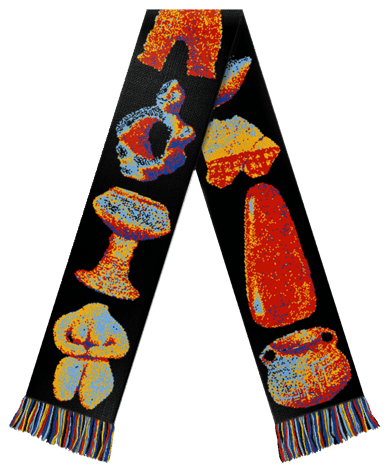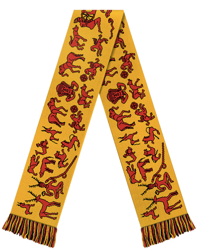 Sutton Hoo Scarf - Red, Blue, Golden Yellow, Black and Grey