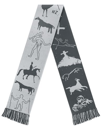 Bayeux Tapestry Scarf - White, Grey, Light Brown, Black