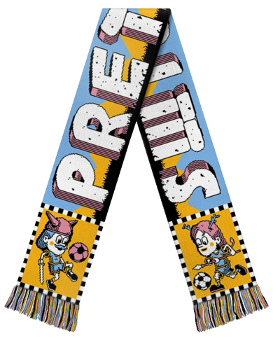 Pretanic Pilgrims (Imaginary) Football Team Scarf - Light Blue, Rose, Yellow, White & Black